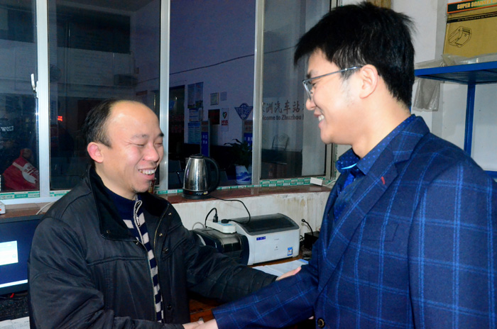 凌晨5:40時,朱董事長首先來到株洲長途汽車站,與員工們一一握手,致以新春的問候:“同志們,你們好!”